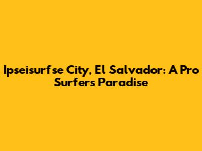 Ipseisurfse City, El Salvador: A Pro Surfer's Paradise